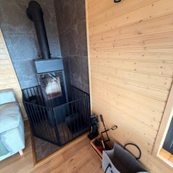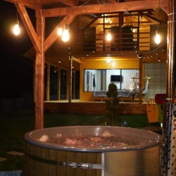 Ideală pentru iubitorii de liniște și natură, cabana vine în întâmpinarea ta un ciubăr a cărui utilizare este inclusă în tariful de cazare, pentru a te putea bucura de cadrul natural superb.