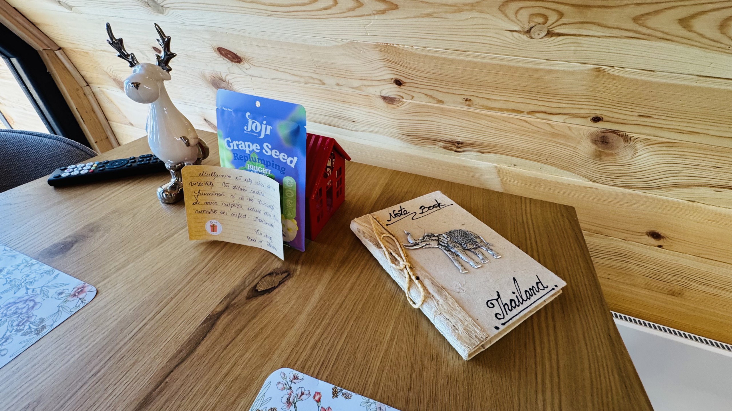 Inspirată de farmecul thailandez, cabana se remarcă prin spații aerisite, materiale naturale și un stil contemporan, fiind potrivită atât pentru un cuplu, cât și pentru o familie cu un copil. Poziționarea sa la capătul proprietății accentuează sentimentul de retragere și exclusivitate, transformând-o într-un refugiu ideal pentru cei care își doresc liniște deplină și momente autentice de reconectare, departe de zgomotul cotidian.